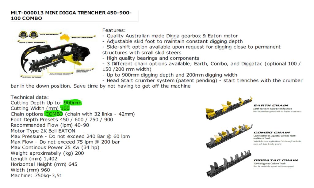 - Állítható munkamélység: A kívánt árokmélység könnyen beállítható.